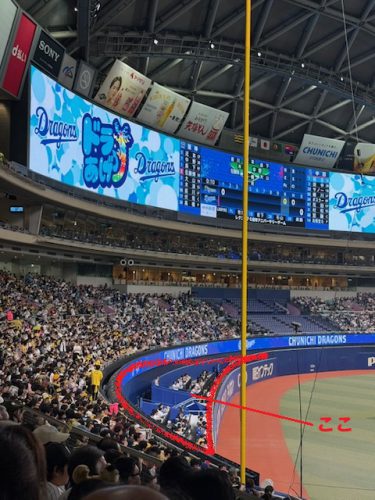 レフト側フェアゾーンとファウルゾーンの境目のポール付近が我らの陣地です★